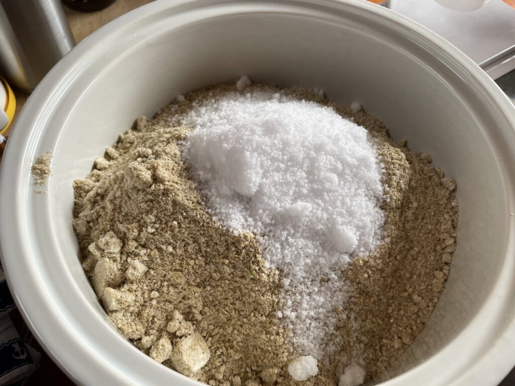 うちには少なくともひーばーちゃん時代からある秘伝のぬか床がありますが、それとは別にマイぬか床を作ってみたくて作ってみました。 まずはぬか、塩 山椒 鷹の爪に、元のぬか床を一つまみ移植。 昆布出汁で良い感じの水分量でまぜま